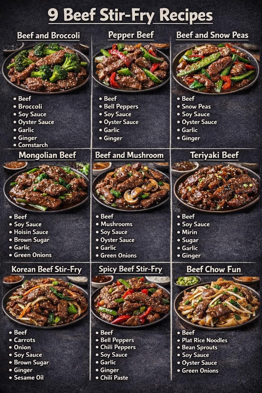 Instructions: Ingredients:• Beef• Bell Peppers• Soy Sauce• Oyster Sauce• Garlic• Ginger• Oil Instructions: Ingredients:• Beef• Snow Peas• Soy Sauce• Oyster Sauce• Garlic• Ginger Instructions: Ingredients:• Beef• Soy Sauce• Hoisin Sauce• Brown Sugar• Garlic• Green Onions• Oil Instructions: Ingredients:• Beef• Mushrooms• Soy Sauce• Oyster Sauce• Garlic• Green Onions Instructions: Ingredients:• Beef• Soy Sauce• Mirin• Sugar• Garlic• … Read more