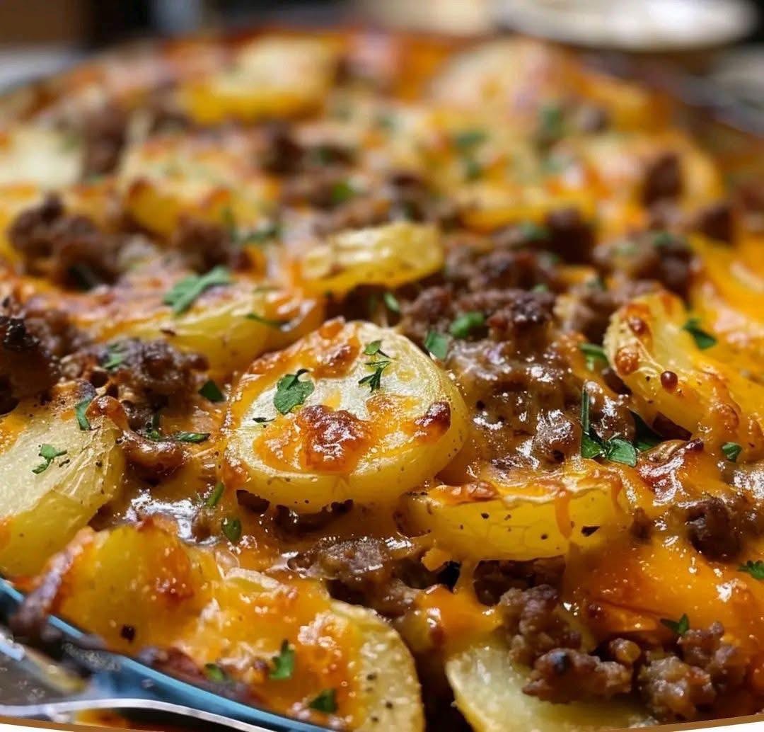 This Cheesy Ground Beef and Potato Casserole features layers of creamy potatoes, juicy seasoned beef, and rich melted cheese — baked to perfection. It’s warm, comforting, and bursting with flavor in every bite — the kind of dish that fills the kitchen with irresistible aroma.