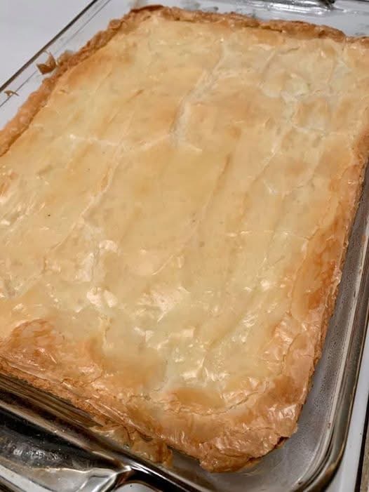 - Bake for 35–40 minutes, until golden on top and slightly jiggly in the center. (Don’t overbake — the gooey texture is the secret!)