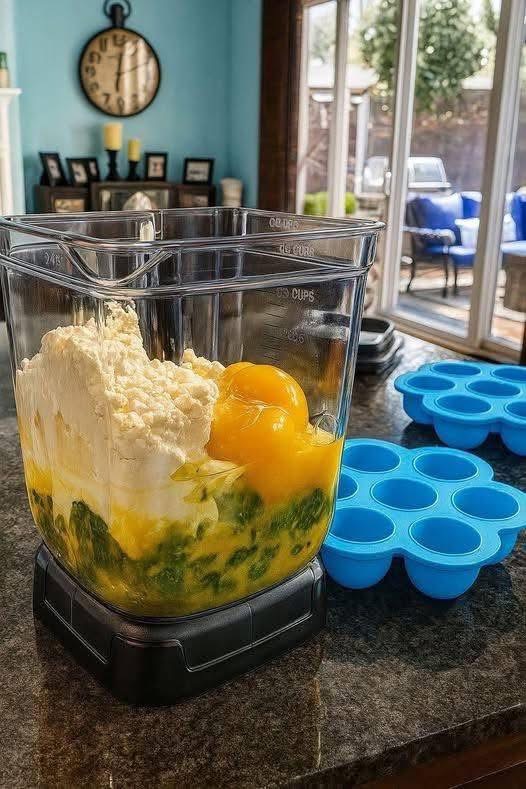 Lightly spray each cup with avocado spray or non-stick oil. Place the mold on a baking sheet for stability. - Blend the base: