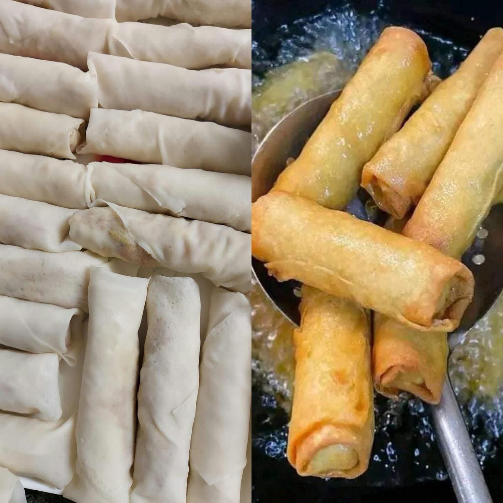 Heat oil in a deep pan and fry the rolls over medium heat until golden brown and crisp. Remove and drain on paper towels.
