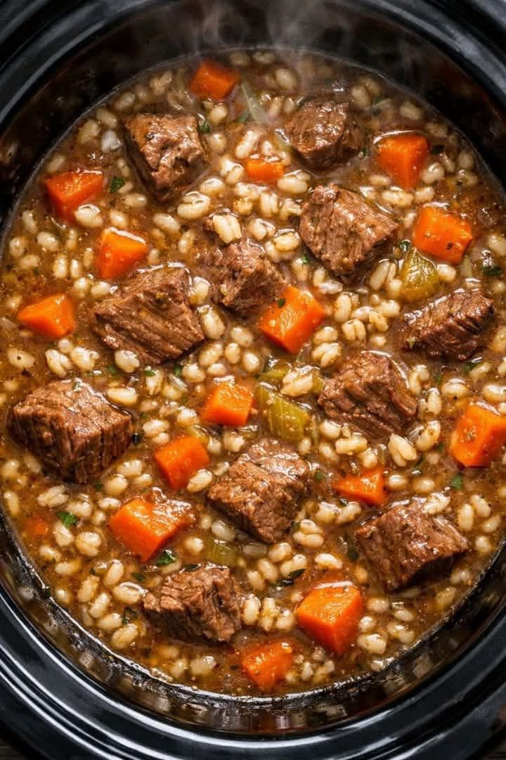 This soup is thick, filling, and deeply satisfying. The beef becomes tender and flavorful, the barley