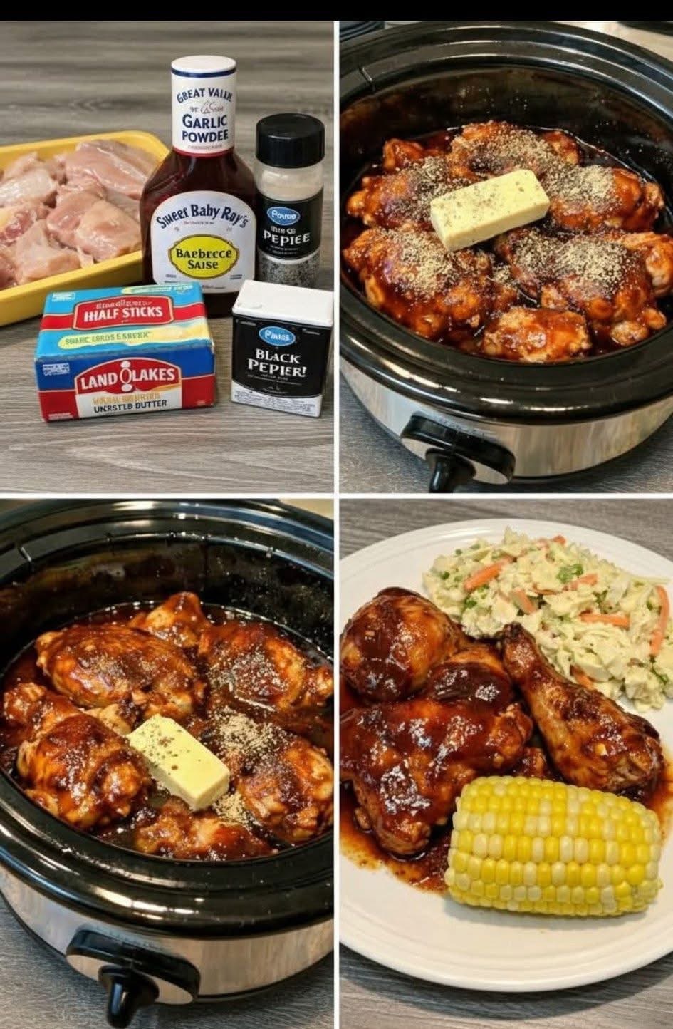 🍗 Crockpot BBQ Butter Chicken (3 Ingredients + Seasoning)