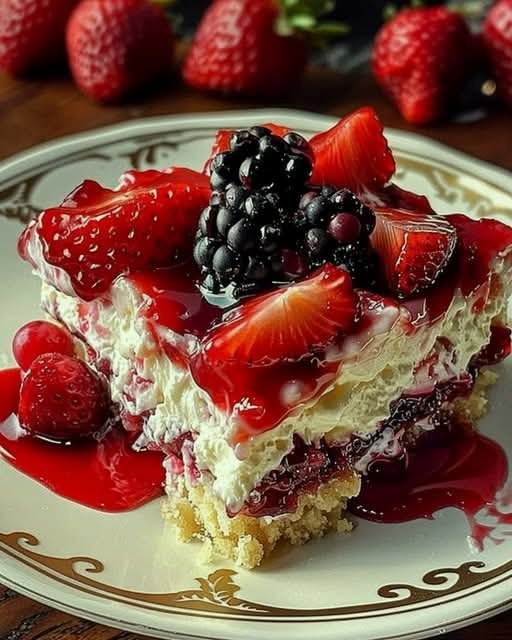 Cool and serve: Let the dump cake cool for about 10-15 minutes before serving. It can be enjoyed warm or at room temperature π₯. Optionally, garnish with fresh strawberries for a pop of color and freshness π.