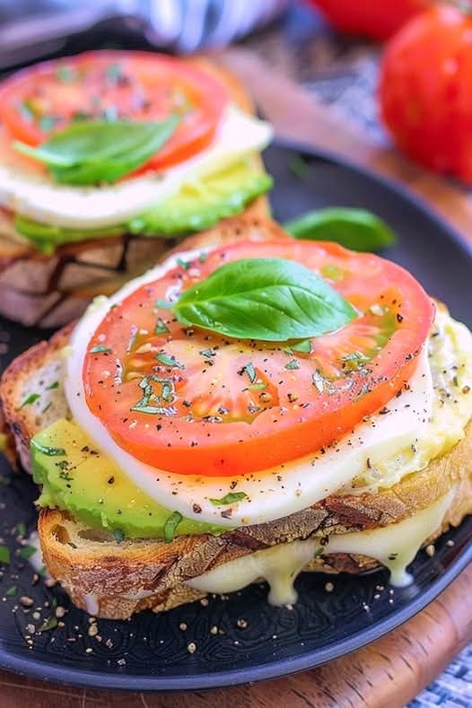 Indulge in this creamy and delicious Avocado, Mozzarella, and Tomato Grilled Cheese, perfect for a quick lunch or snack! 🥑🧀🍅
