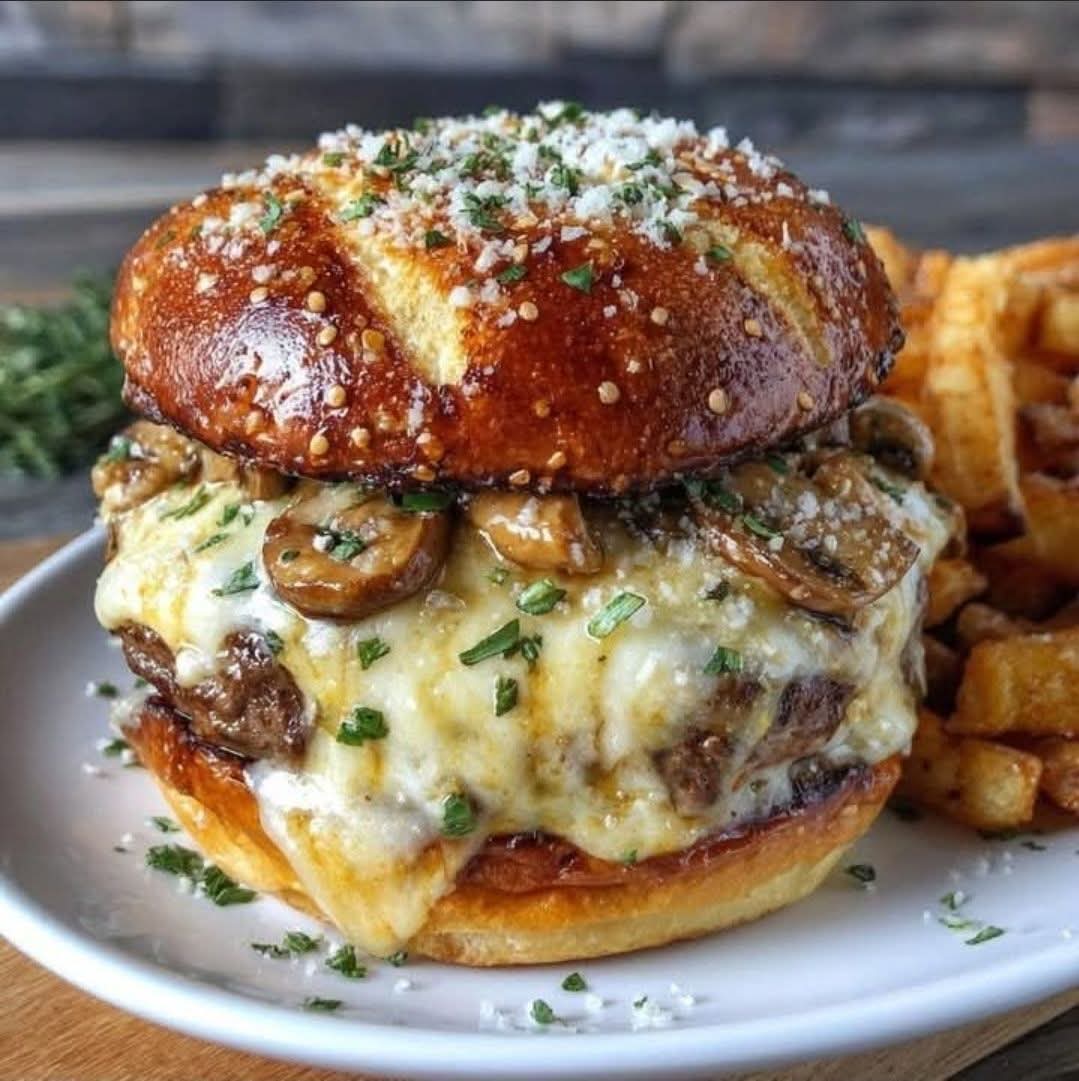 Get ready to savor the ultimate indulgence with this Mushroom Swiss Burger, a delicious twist on the classic that’s pure comfort food! 🍔🍄✨