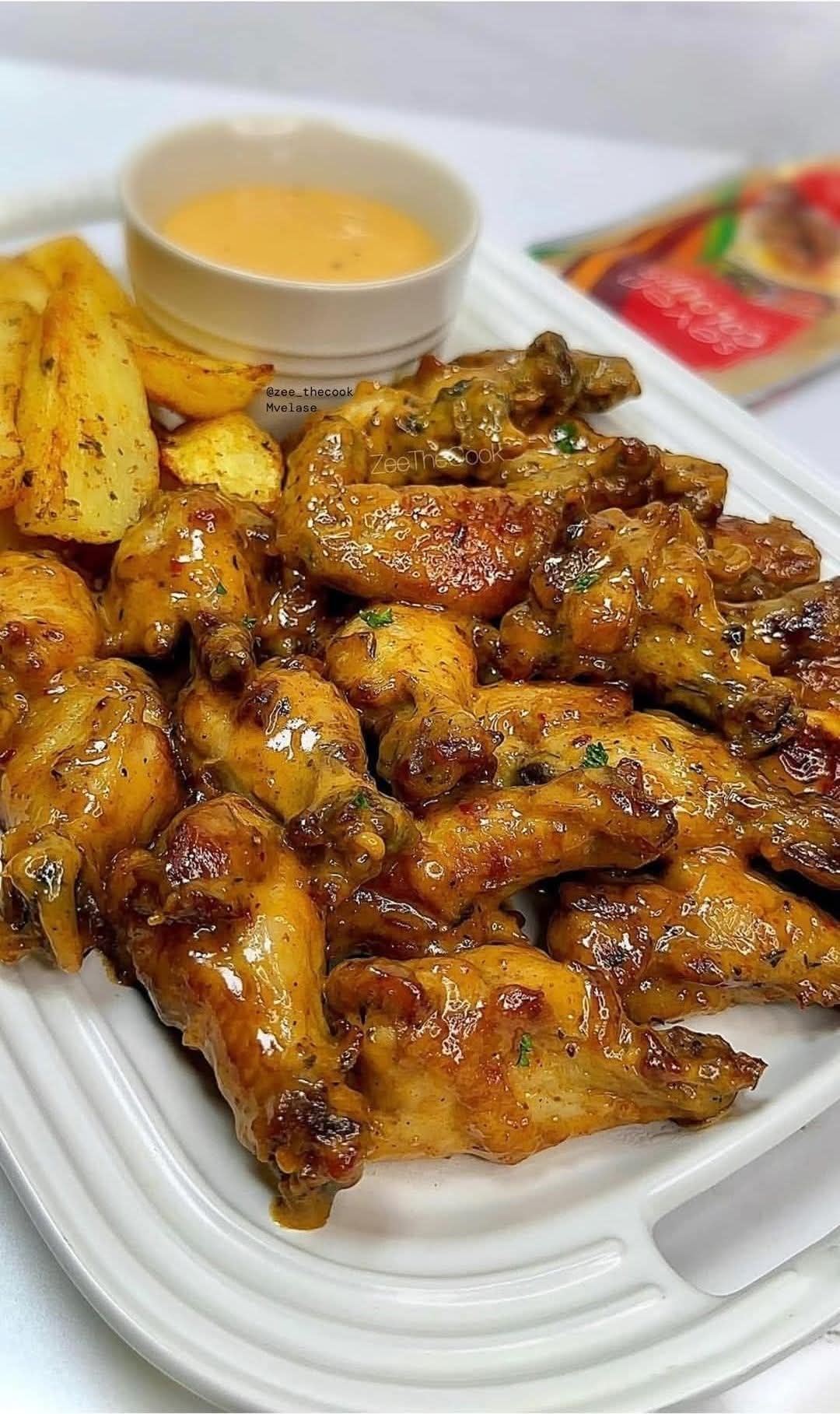 Cut the wings into drumettes and flats, then pat them dry with paper towel. Stir together the cornflour, Seven Colours Grill Seasoning™, garlic salt, mixed herbs, paprika, black pepper corns, olive oil add the wings and coat them with the seasoning mixture. Place the chicken wings in a single layer in an air fryer basket. Set the Air Fryer Grill & Multi Cooker to 180°C and cook for 15 to 20 minutes or until the wings are crisp and golden. Meanwhile, stir all the sauce ingredients together. When the wings are done, coat them in the sauce and serve immediately.
