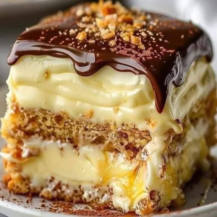 No-Bake Chocolate Éclair Cake Ingredients (Serves 10–12) For the layers: For the chocolate topping (homemade ganache-style): Instructions 1. Make the filling 2. Assemble the cake 3. Make the chocolate topping Option 1 — Homemade ganache: Option 2 — Easy frosting topping: 4. Add topping 5. Chill ⭐ Tips