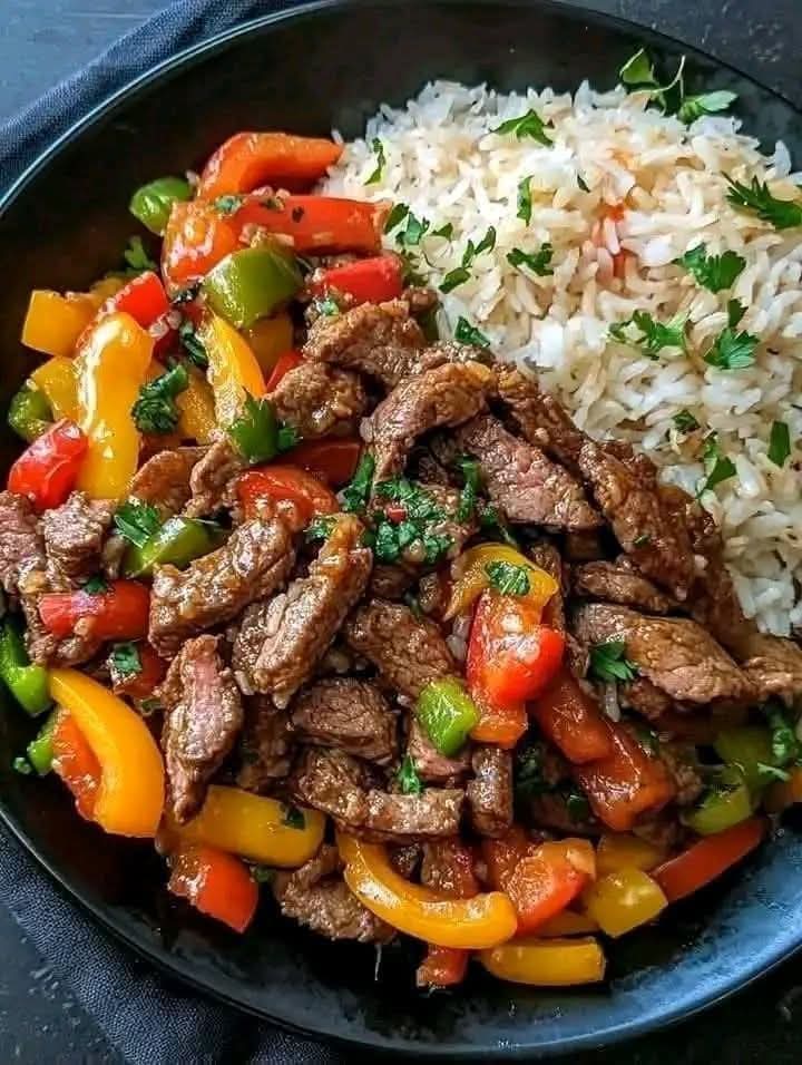 Beef Stir-Fry with Peppers & Rice ππΆοΈπ₯©β¨