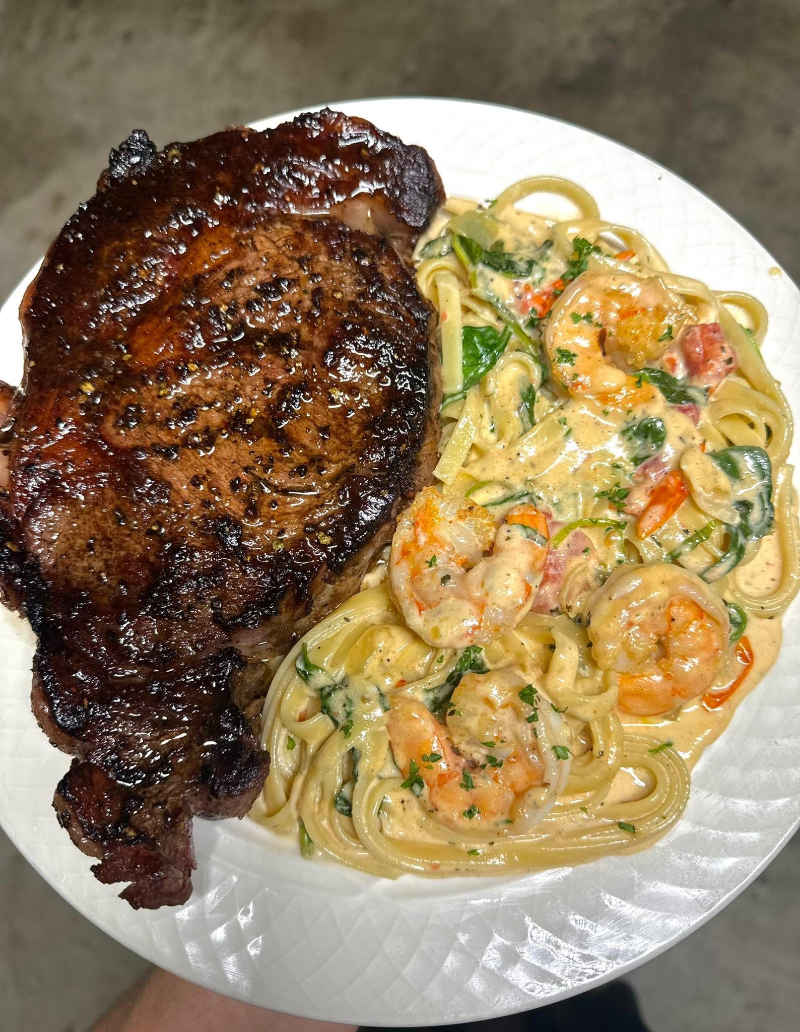 STEAK & SHRIMP PASTA FOR DINNER