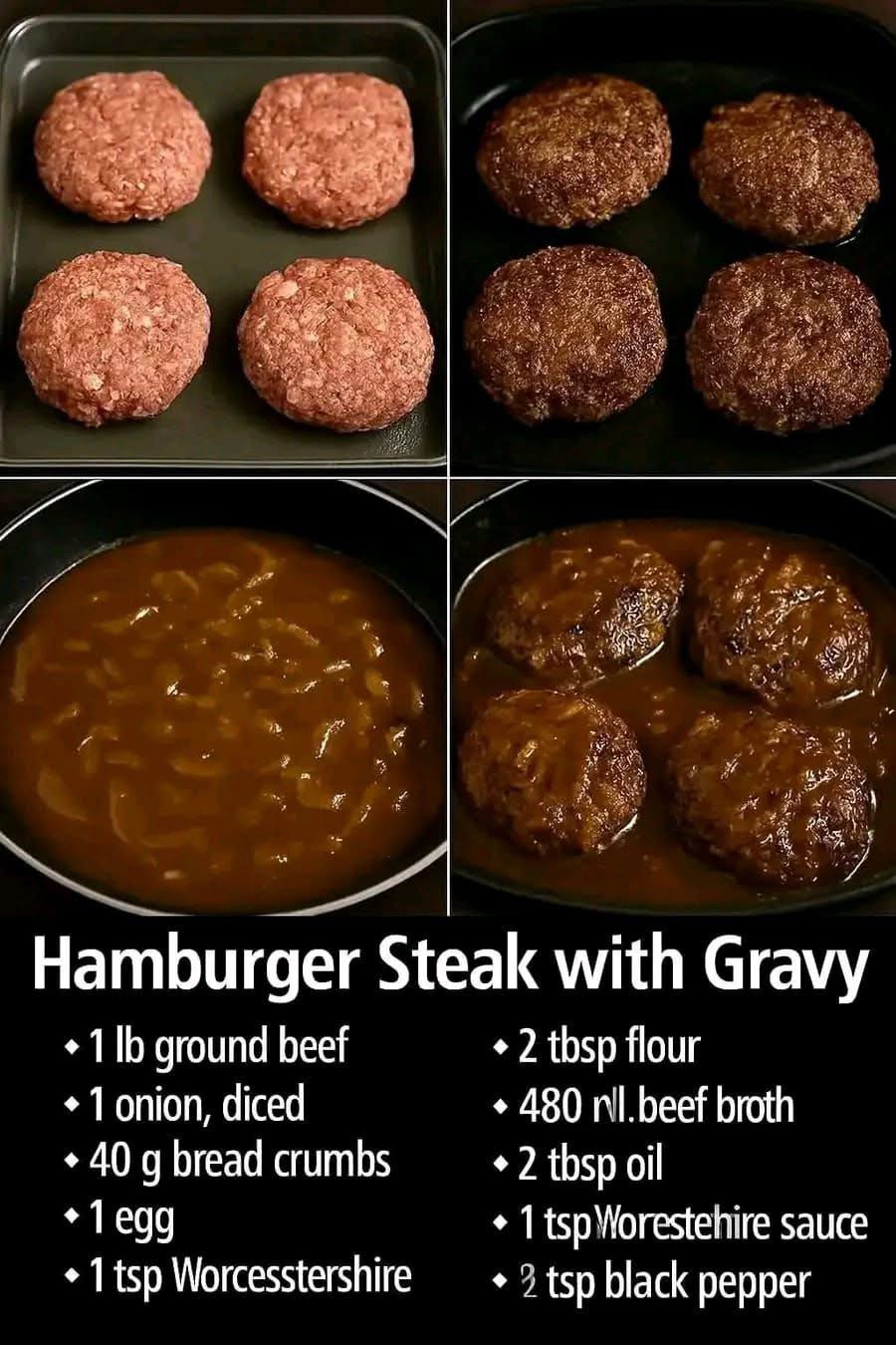 Ingredients For the Hamburger Steaks: 1 lb (450 g) ground beef (80/20 recommended) 1 small onion, finely chopped 1 large egg ½ cup breadcrumbs (or crushed crackers) 2 tbsp milk 1 tbsp Worcestershire sauce 1 tsp garlic powder ½ tsp onion powder 1 tsp salt ½ tsp black pepper 2 tbsp vegetable oil or butter … Read more